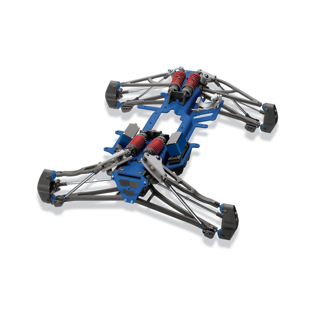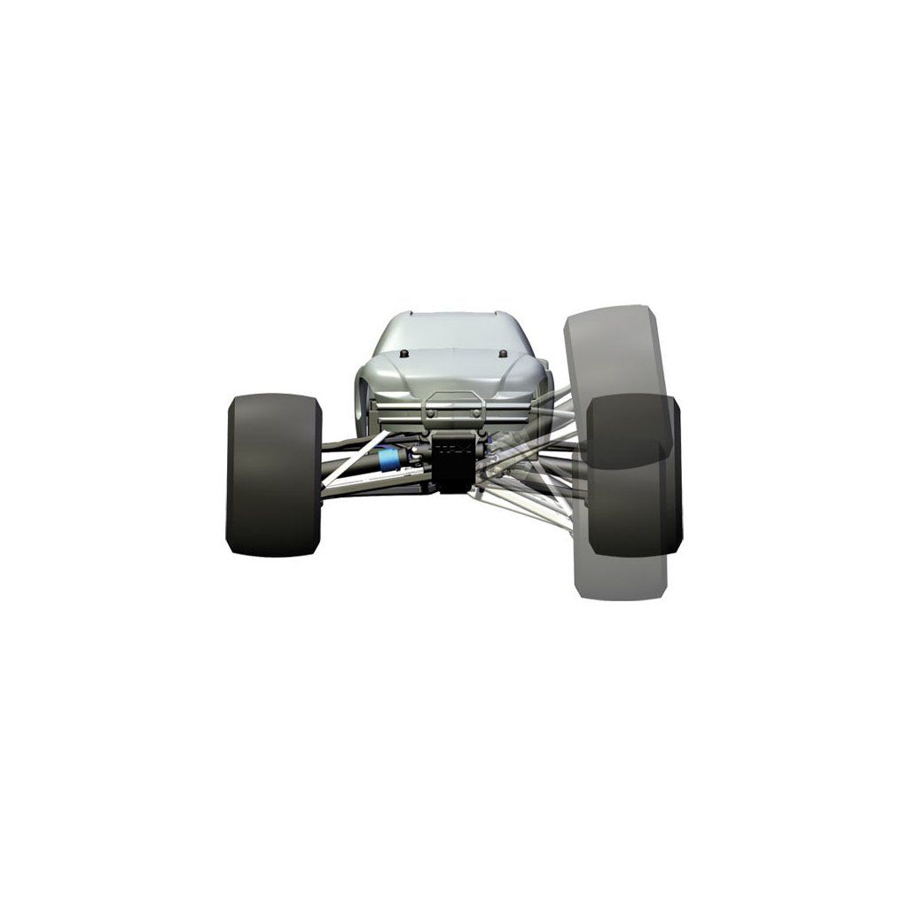 To, čím tento Monster vyniká, je unikátní 3D tvarovaná hliníková konstrukce podvozku, která v průřezu tvoří nosník. Proto je zde zachována tuhost, pevnost a nízká hmotnost. Neuvěřitelný úhel kývání ramen náprav je možný jen díky pokročilému nastavení geometrie Revo náprav a podélnému uložení tlumičů na podvozku. Tlumiče tak jsou chráněny před nárazy a poškozením. Průjezd i těžkým terénem při vysoké rychlosti nečiní autu žádný problém a zvládá je zcela bravurně.