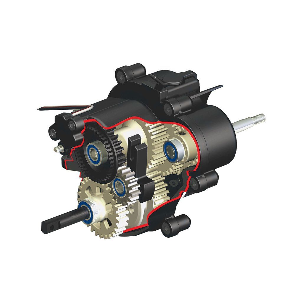 Pouze Traxxas nabízí nekompromisní revoluční převodovku se zpátečkou s plynulým a citlivým řazením. Tajemství je v OptiDrive elektronickém modulu na bázi mikroprocesoru, který snímá rychlost vozidla a optimalizuje řazení zpátečky. Elektronické ovládání také zabraňuje náhodnému zařazení zpětného či dopředného chodu, pokud je Nitro Revo jede vyšší rychlostí.