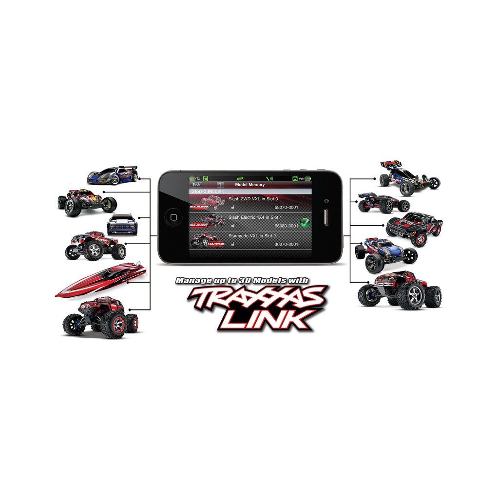 Traxxas pro Vás připravil zcela novou řadu RC souprav pro RC modely aut. Původně bylo možné RC vysílače vybavit dokovací stanicí pro zařízení od Apple. Traxxas pokračuje ve vývoji dále a připravil pro Vás RC vysílač s bezdrátovým BlueTooth modulem. Díky tomu můžete k vysílač bezdrátově připojit jakékoliv zařízení s BlueTooth LE rozhraním a operačním systémem Apple iOS (iPhone, iPod, iPad, ...) nebo Google Android (Samsung Galaxy, ...). Aplikace Traxxas Link pro zařízení od Apple je k dipozici zdarma na AppStore, aplikace pro zařízení Google Android je zdarma na stránkách GooglePlay.