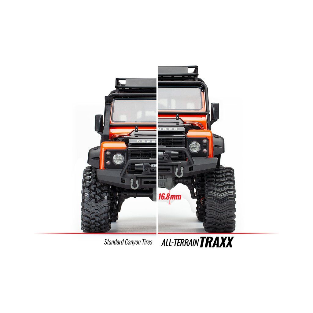 Pásy Traxx zvýší světlu výšku modelu a výrazně zvětší nájezdový a výjezdový úhel, díky tomu překonáte i takřka kolmé a vysoké překážky před Vámi. Pásy jsou také širší, což dodá modelu TRX-4 ještě více stability při naklonění.