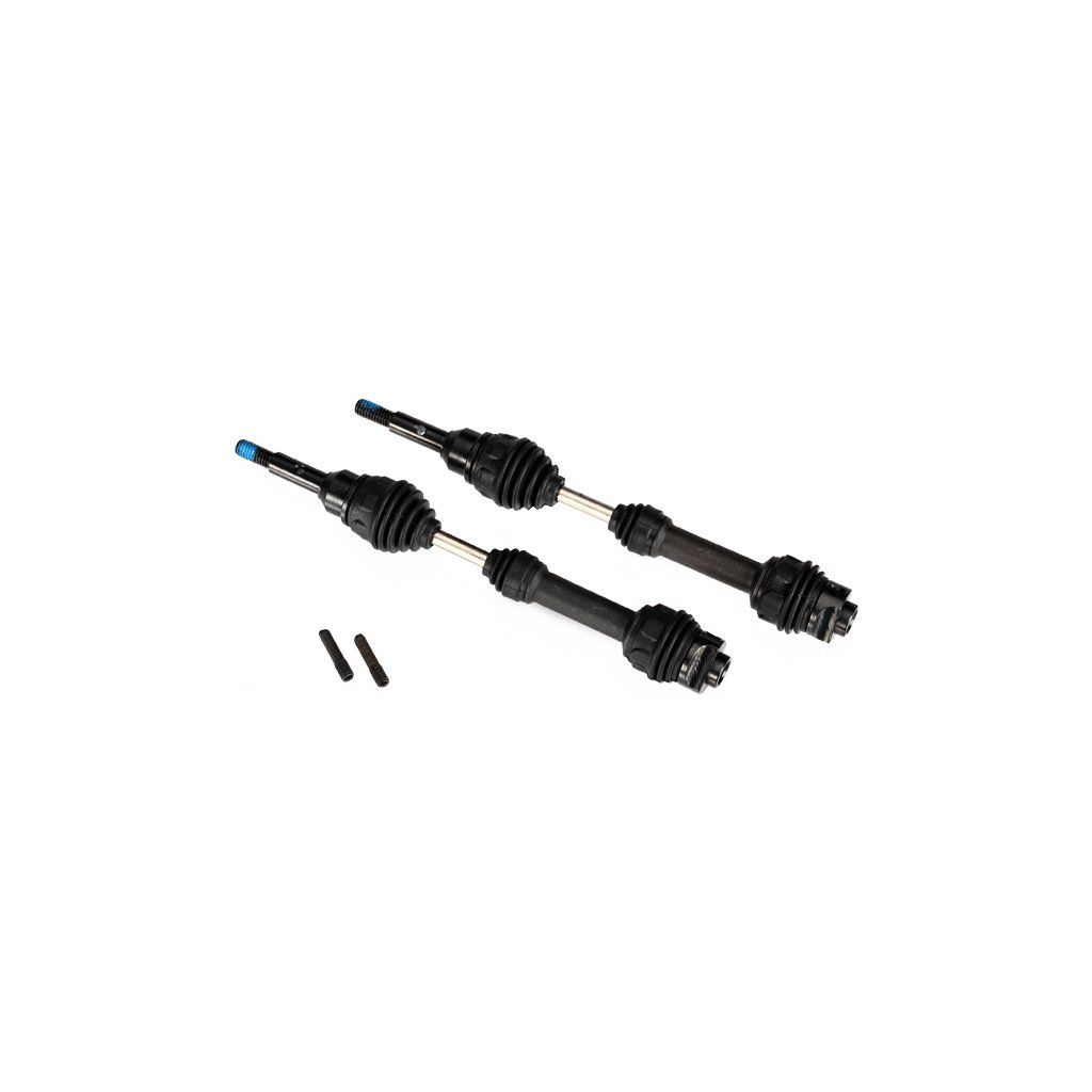 Kompletní tuningové ocelové CV (Constant Velocity - konstantní rychlost) poloosy pro zadní nápravu vybraných aut Traxxas. Poloosy jsou vyrobeny z kvalitní oceli, klouby jsou vybroušené do požadovaných rozměrů. Klouby a výsuvná část jsou překryty pryžovými ochrannými návleky.