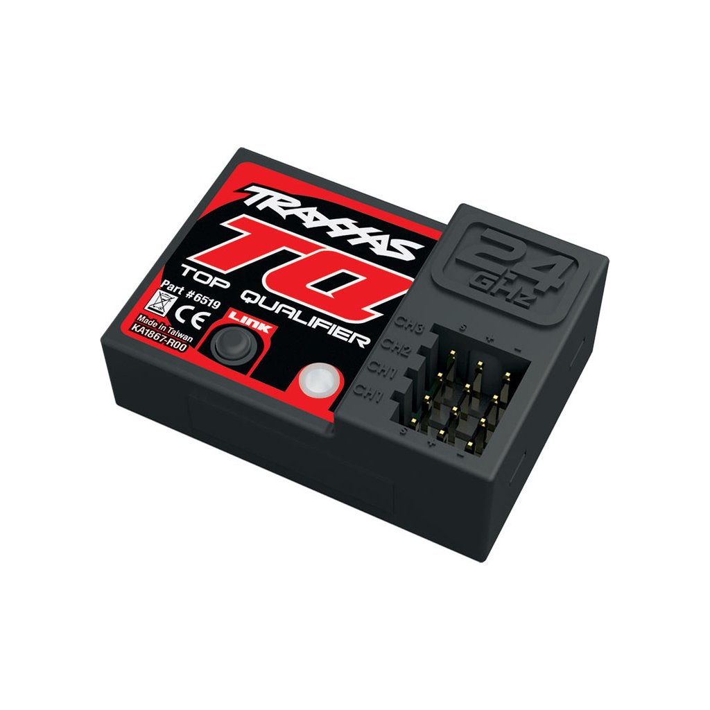 Tříkanálový přijímač Traxxas TQ 2.4 GHz. Přijímač je kompatibilní vysílači Traxxas TQ a TQi 2.4 GHz s bluetooth modulem nebo možností jeho instalace.