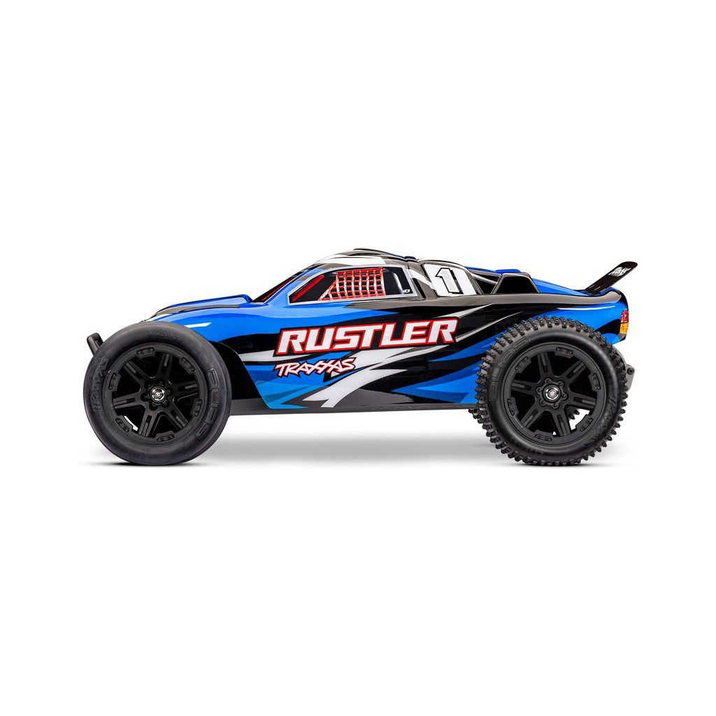 Šasi je vyrobeno z nylonu, který je pro vyšší pevnost a houževnatost plněný skelnými vlákny. Šasi je prostorově tvarované, aby mělo vysokou tuhost. Motor s převodovkou a diferenciálem je umístěn v zadní části modelu. Pohonný systém tvoří kompaktní uzavřený celek, což činí z RC modelu auta Traxxas Rustler nenáročný model.