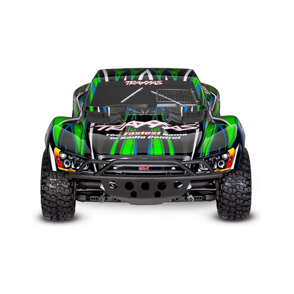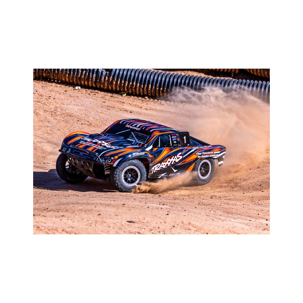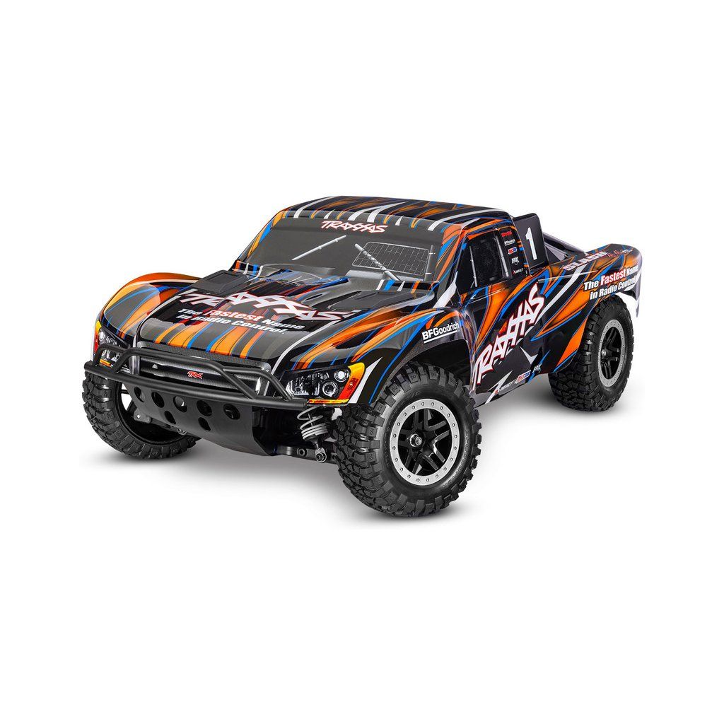 Osvědčený RC model auta Slash, který stanovil standard pro všechny ostatní modely v měřítku 1:10, přichází v nové ještě odolnější verzi vybavené těmi nejpevnějšími komponenty Extreme Heavy Duty. Pro brutální akceleraci a rychlost až 96 km/h je model vybaven střídavým motorem Velineon 550. K výborné ovladatelnosti přispívá nezávislé zavěšení, náhon 4x4 a elektronická stabilizace jízdy TSM. Nově exkluzivní bez-sponkový systém upínání karoserie pro snadnou výměnu baterie a čistý vzhled.