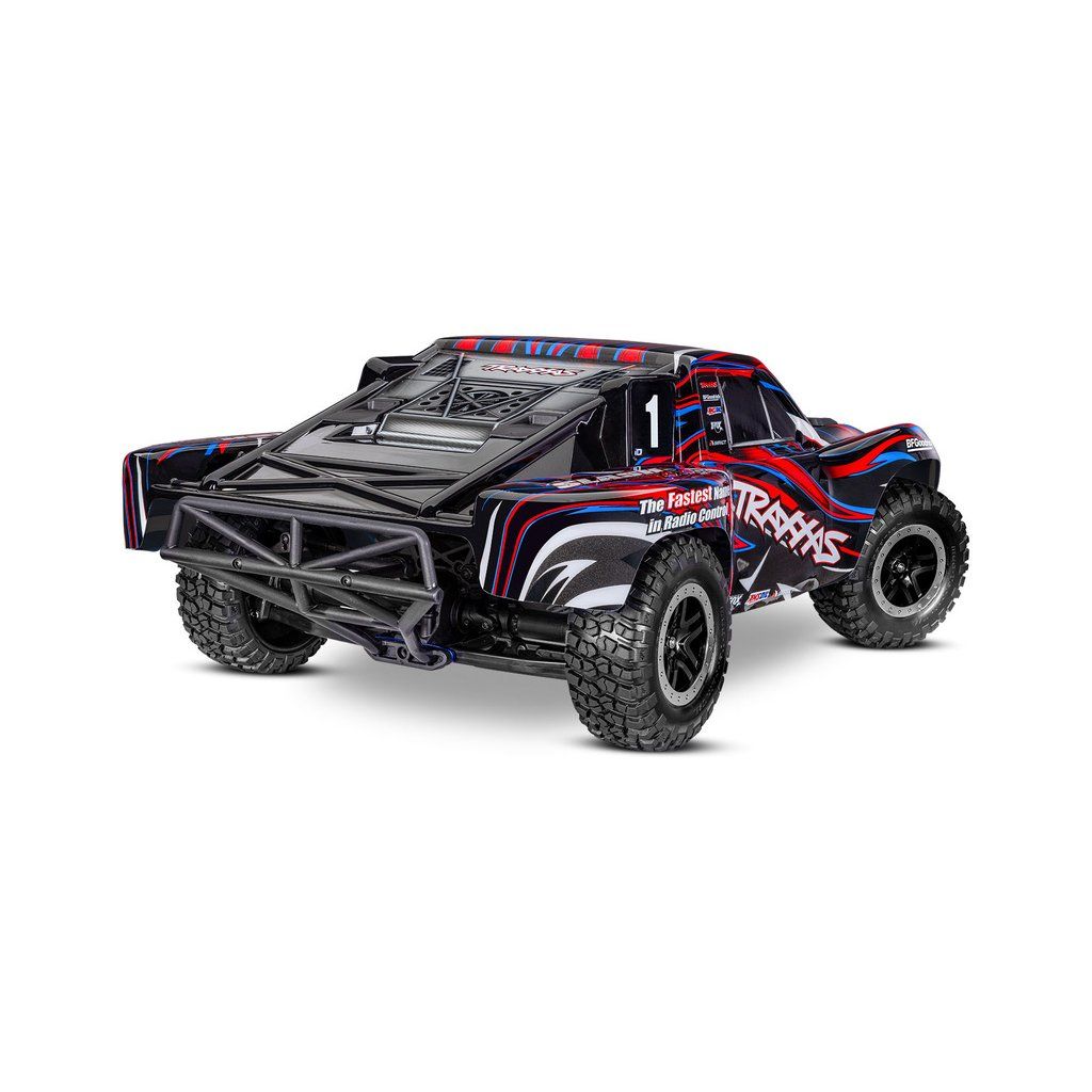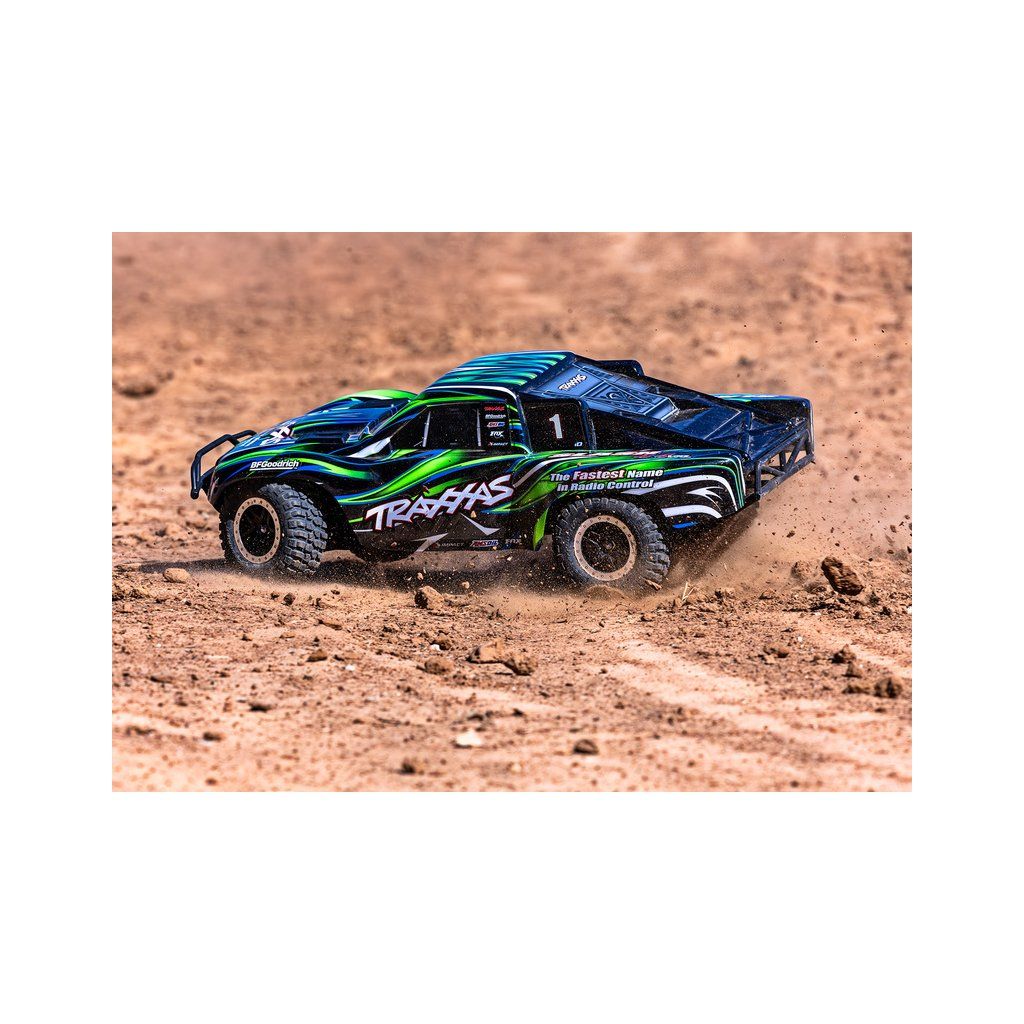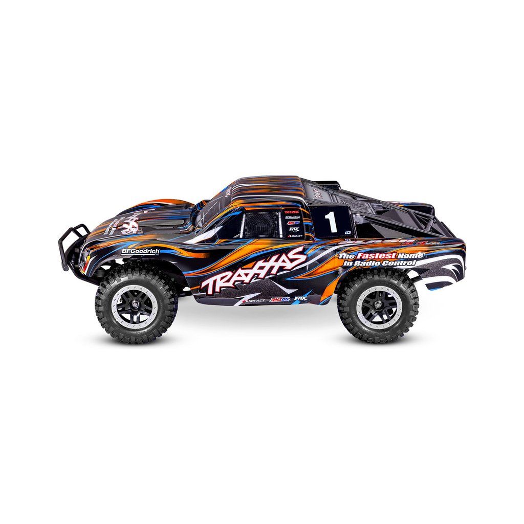 Osvědčený RC model auta Slash, který stanovil standard pro všechny ostatní modely v měřítku 1:10, přichází v nové ještě odolnější verzi vybavené těmi nejpevnějšími komponenty Extreme Heavy Duty. Pro brutální akceleraci a rychlost až 96 km/h je model vybaven střídavým motorem Velineon 550. K výborné ovladatelnosti přispívá nezávislé zavěšení, náhon 4x4 a elektronická stabilizace jízdy TSM. Nově exkluzivní bez-sponkový systém upínání karoserie pro snadnou výměnu baterie a čistý vzhled.