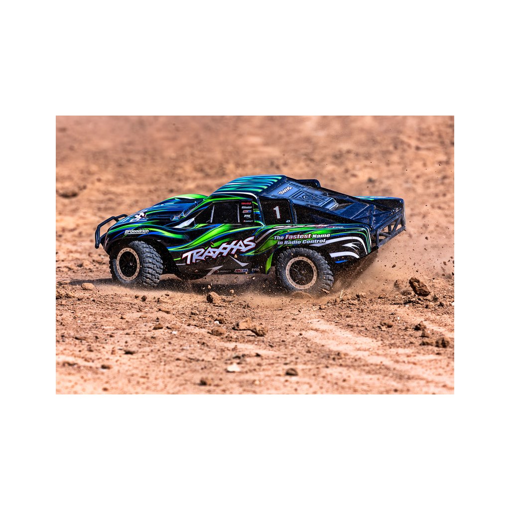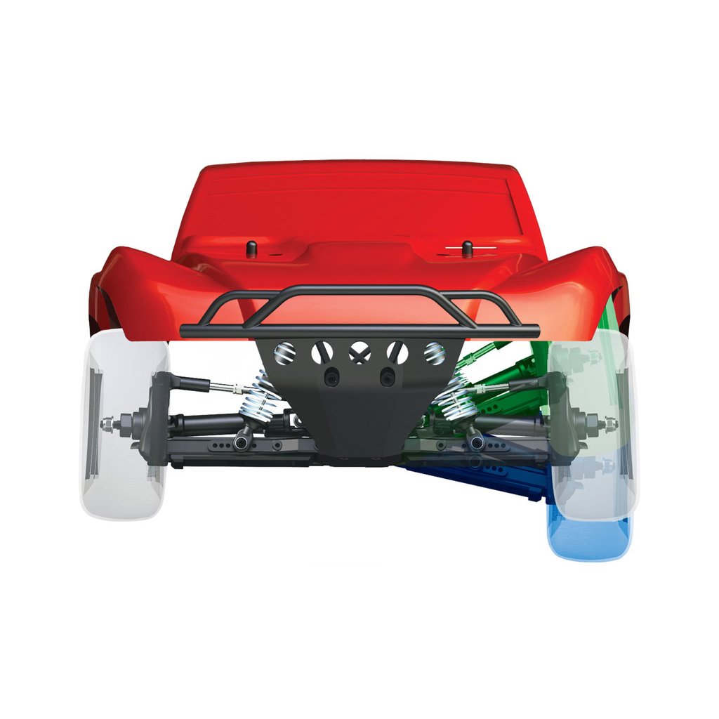 Výborná konstrukce modelu Slash byla zachovaná, včetně modulární konstrukce šasi, špičkové geometrie zavěšení s dlouhým zdvihem ramen, olejových tlumičů, pohonného ústrojí s třecí spojkou a předního a zadního diferenciálu. Díky náhonu 4WD a střídavému pohonu zažijete nespočet hodin perfektní ovladatelnosti a bleskové akcelerace. Maximální trakci zajistí licencované pneumatiky BFGoodrich® Mud-Terrain™ T/A® s vynikající přilnavostí za všech podmínek.