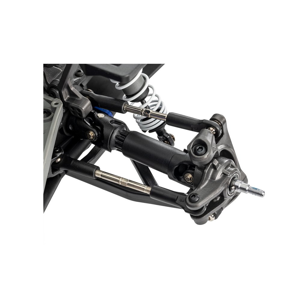 Dlouhý zdvih ramen tlumí i prudké nárazy a zlepšuje ovladatelnost modelu. V každé situaci tak bude mít přesnou a rychlou odezvu řízení. Pro nekončící zábavu jsou na podvozku použity nastavitelné olejové tlumiče a X-kroužky.