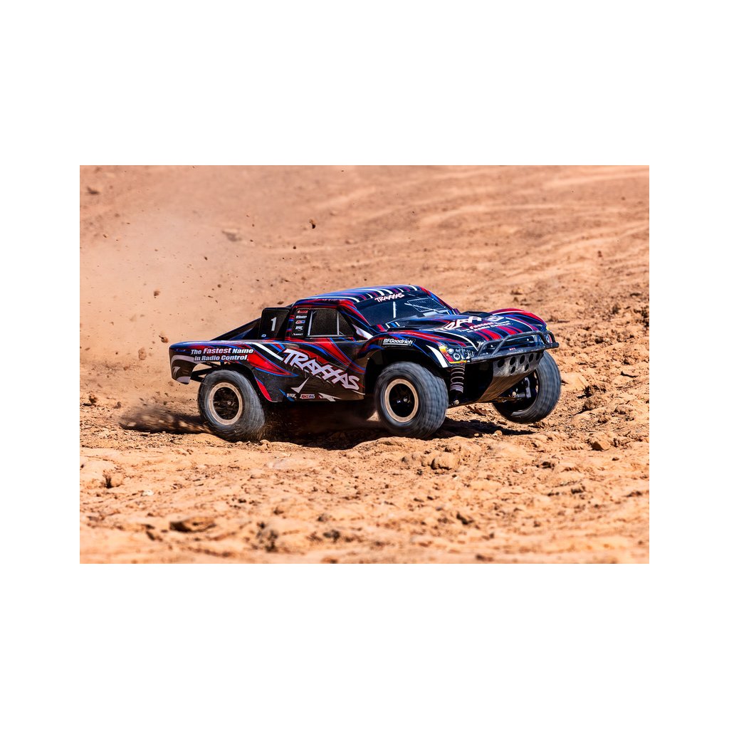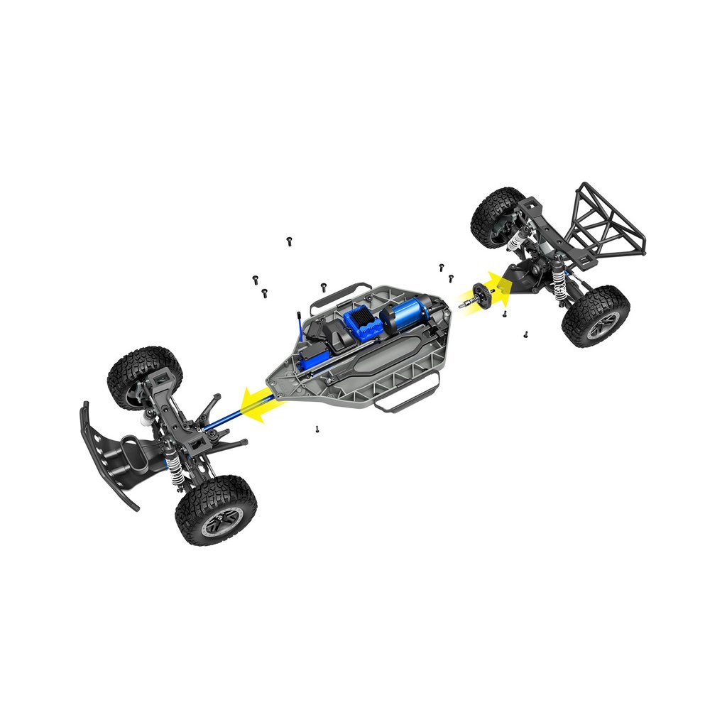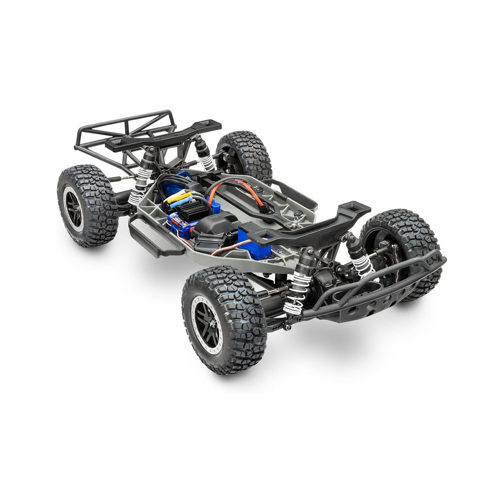 Výborná konstrukce modelu Slash byla zachovaná, včetně modulární konstrukce šasi, špičkové geometrie zavěšení s dlouhým zdvihem ramen, olejových tlumičů, pohonného ústrojí s třecí spojkou a předního a zadního diferenciálu. Díky náhonu 4WD a střídavému pohonu zažijete nespočet hodin perfektní ovladatelnosti a bleskové akcelerace. Maximální trakci zajistí licencované pneumatiky BFGoodrich® Mud-Terrain™ T/A® s vynikající přilnavostí za všech podmínek.