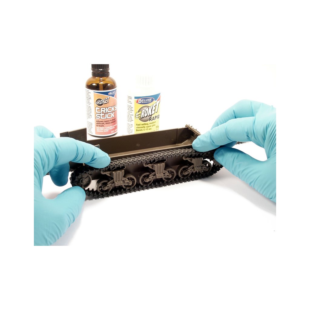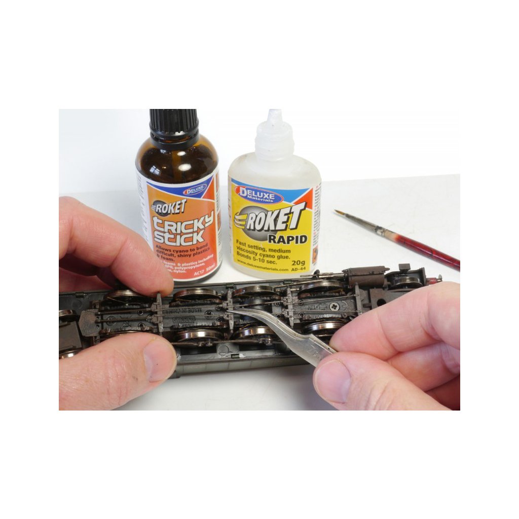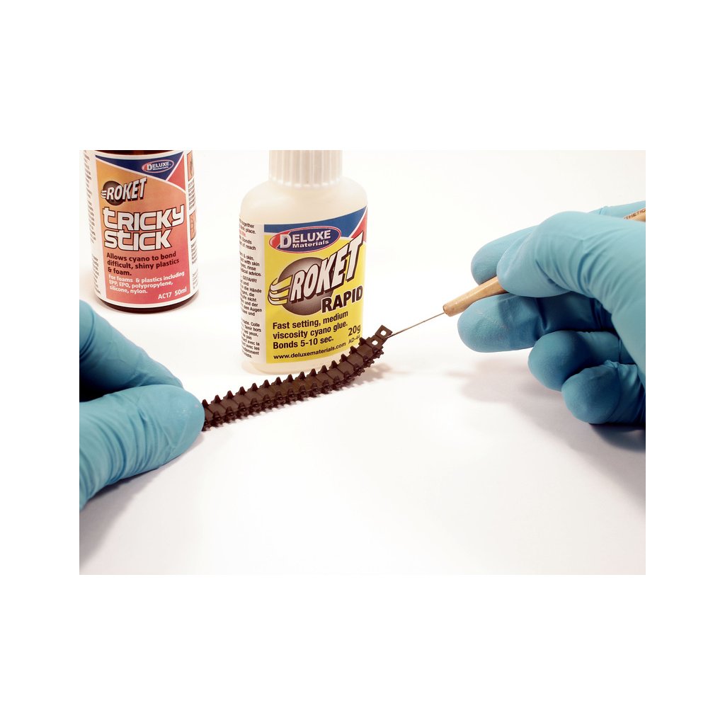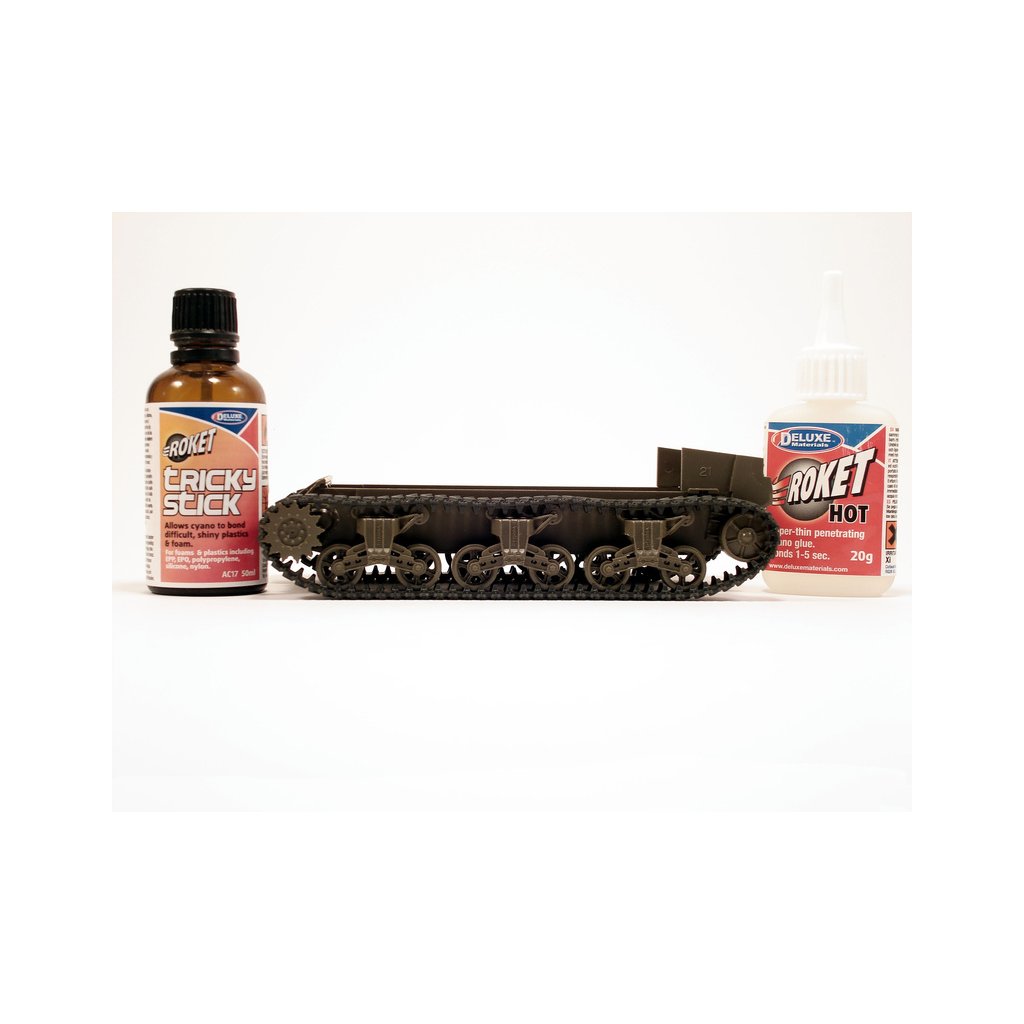 Tricky Stick je přípravek pro lepení těžko lepitelných plastů vteřinovými lepidly. Aktivuje povrch plastů pro lepší přilnutí lepidla. Nanáší se štětečkem na místa, která mají být lepeny.