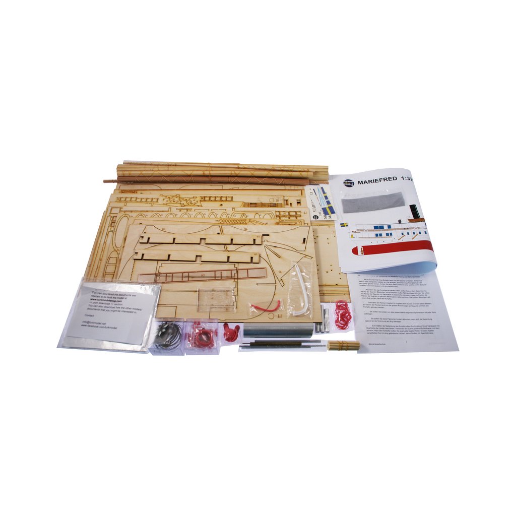 Stavebnice modelu lodi Türkmodel Mariefred s/s kit. Jeden z mála stále aktivních parních člunů ve Švédsku, Mariefred je v provozu od roku 1903 na trati Stockholm-Enhörna-Mariefred. Od té doby stále jezdí a to dokonce s původním parním strojem. Model má dřevěné díly vyřezány laserem, kování jsou kovové odlitky a mosaz.