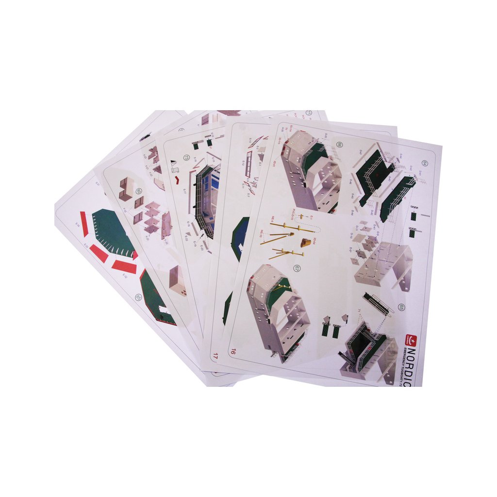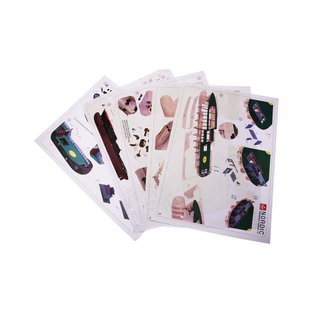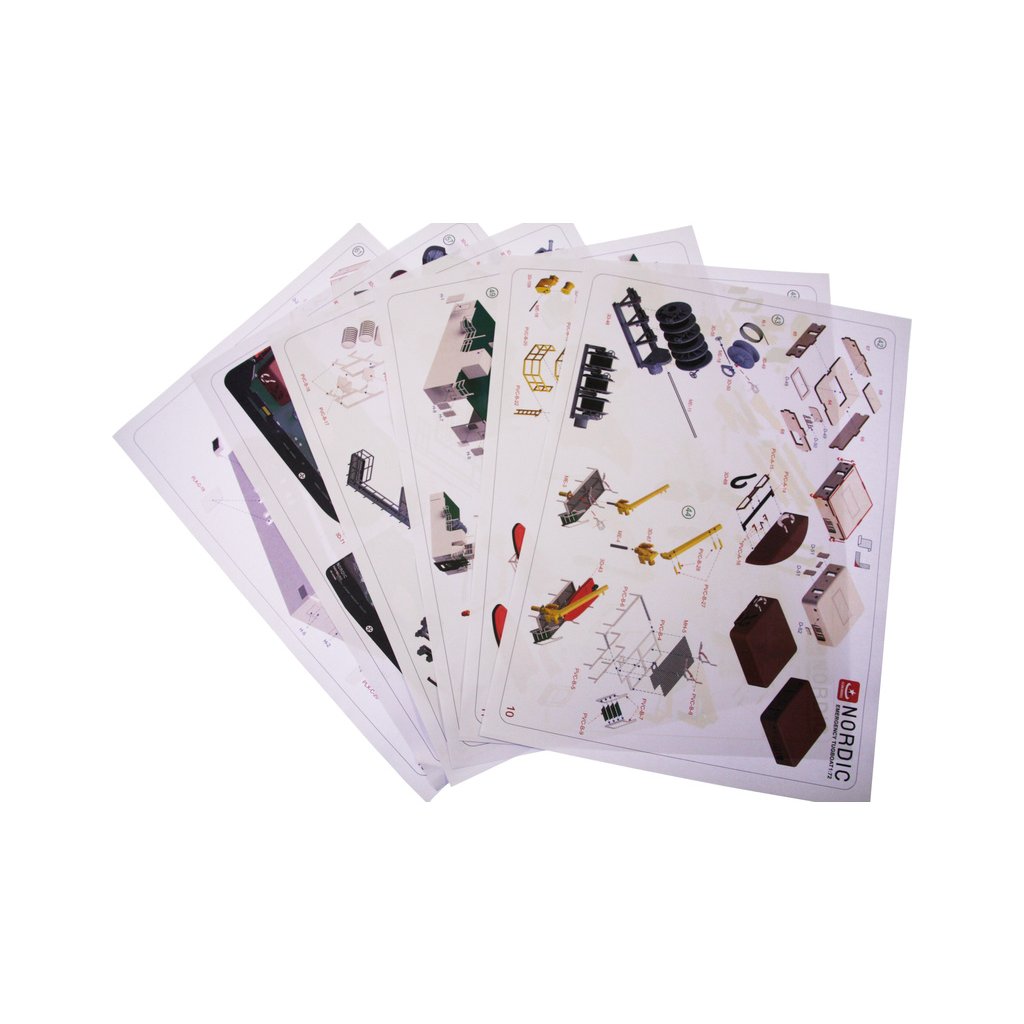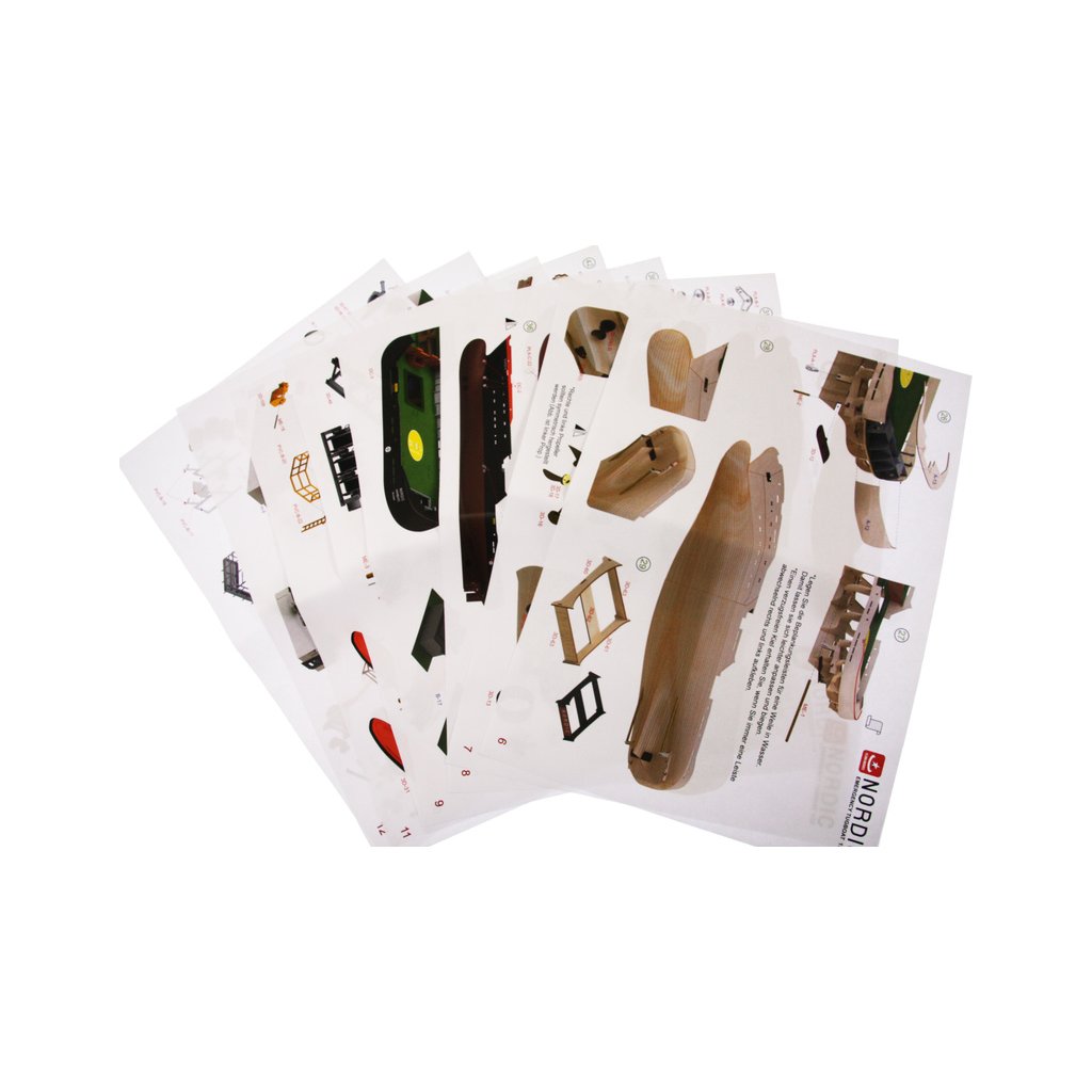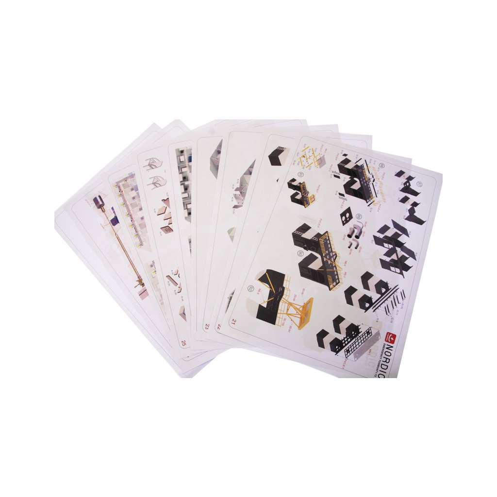 Set obsahuje kompletní sadu výkresové dokumentace modelu s obrázky jednotlivých detailů. Na výkrese jsou nakresleny montážní sestavy, jejich kompletace a to včetně drobných maketových detailů. Vícejazyčný postup stavby rámcově upravuje logické sestavení jednotlivých komponentů.