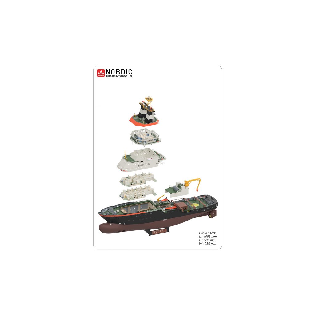 Stavebnice modelu lodi záchranného remorkéru Nordic v měřítku 1:72 s délkou 108 cm. Stavba lodi vhodná pro zkušené modeláře. Maketa byla navržena podle originálních výkresů, včetně detailních prvků. Model obsahuje dřevěný překližkový trup doplněný o lišty z Abachi. Dřevěné díly jsou přesně a čistě laserem řezané. Dále model obsahuje kvalitní resinované 3D díly. Hlavní můstek a obytné kajuty májí kompletně vybavený interiér. Stavebnice je navržena jako statický model, lze jej však sestavit jako plovoucí model a doplnit o pohonnou sadu a elektroniku s RC soupravou. (Není obsahem balení).