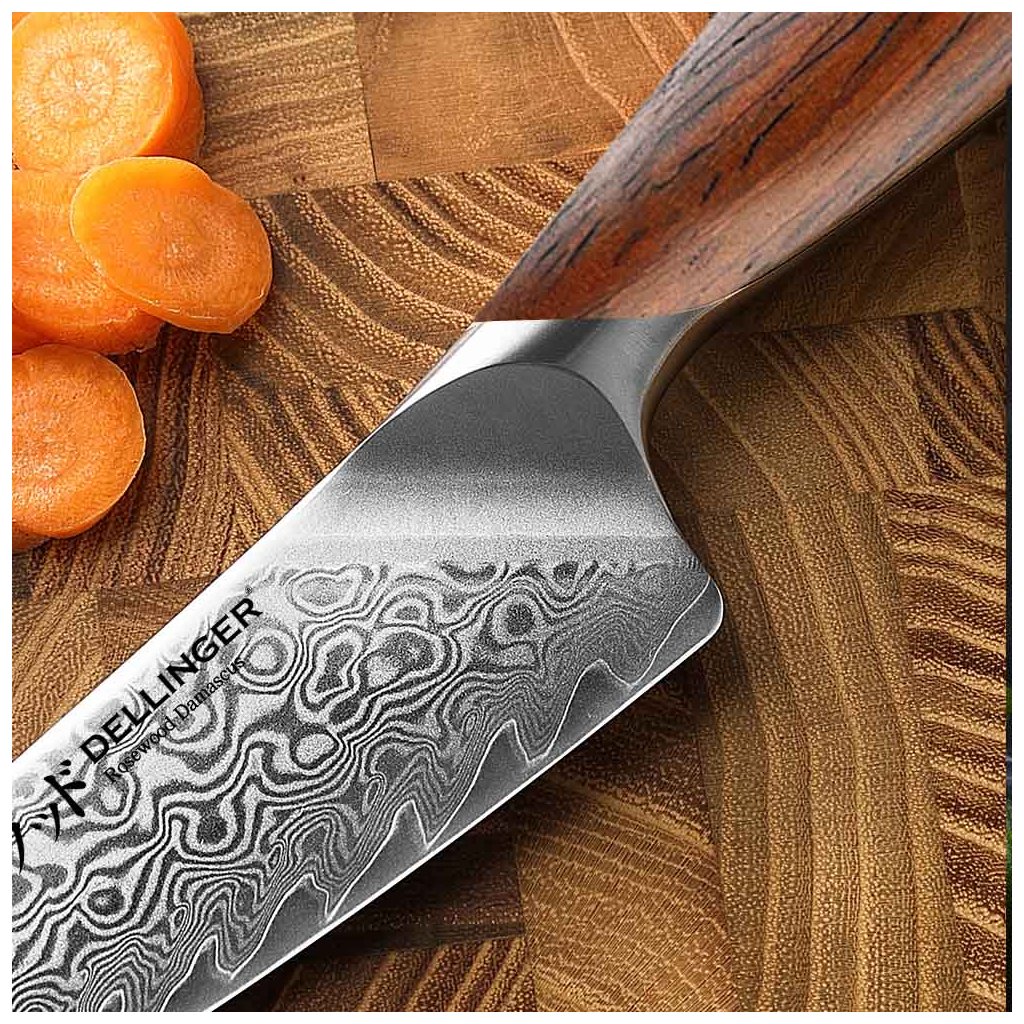 Nože ze série Dellinger Rose Wood Damascus jsou vizuálně ohromující, neuvěřitelně lehké a skvěle padnou do ruky pravákům i levákům. Každý kuchař ocení nejen jejich výjimečný design, perfektní ergonomii a dokonalé opracování.