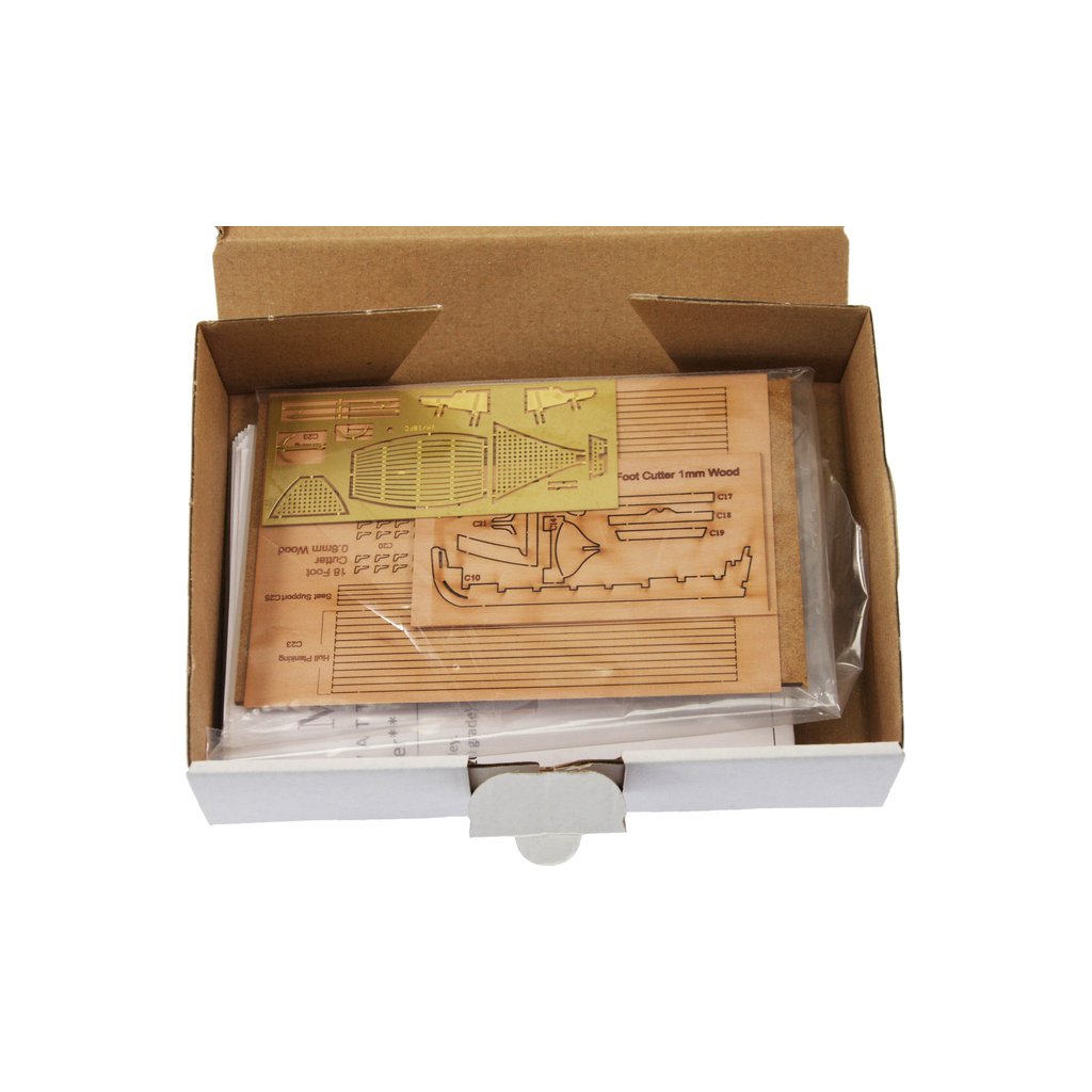 Stavebnice modelu lodi Vanguard Models - Kutter člun v měřítku 1:64. Délka modelu lodi je 86mm, stavba převážně ze dřeva s drobnými doplňky, součástí je i stavební plán. Obrazový manuál krok za krokem