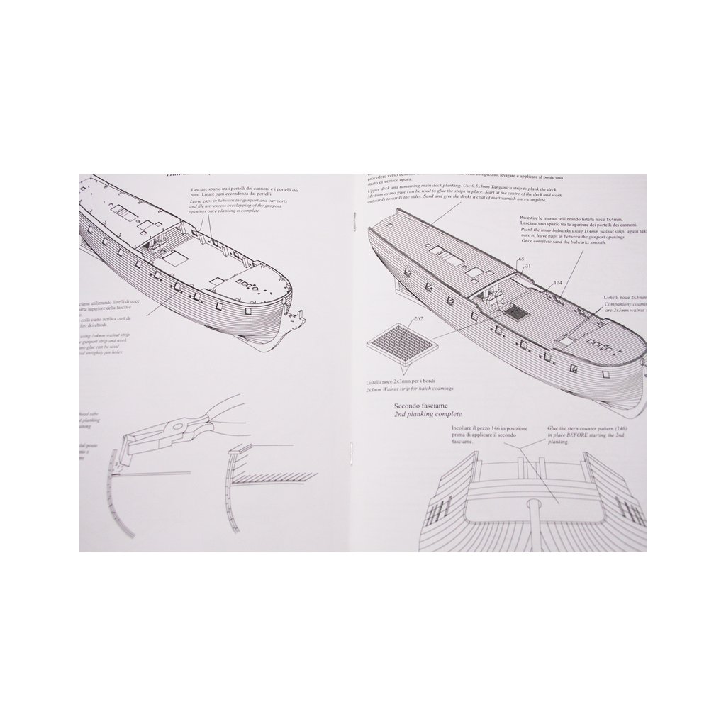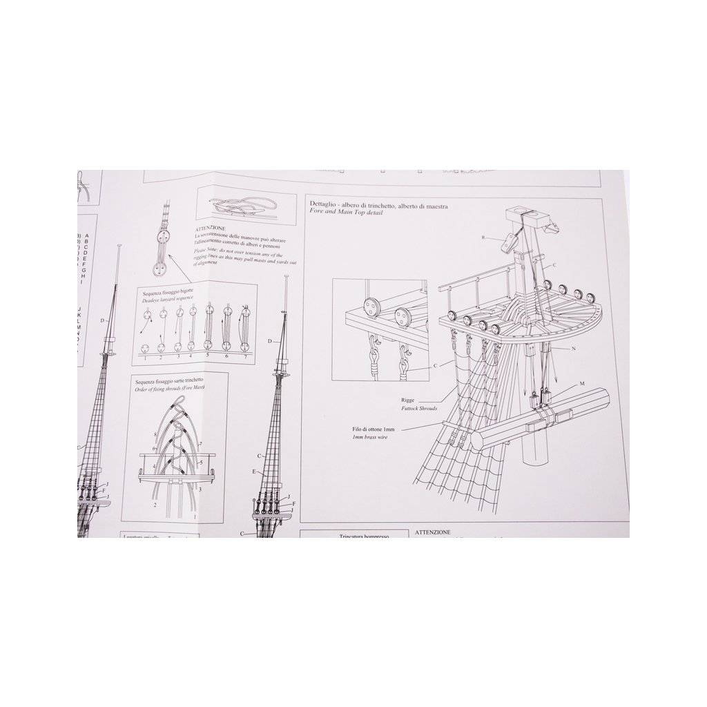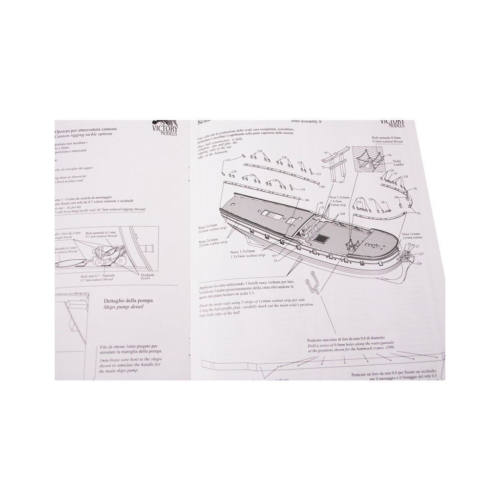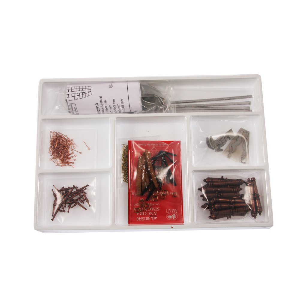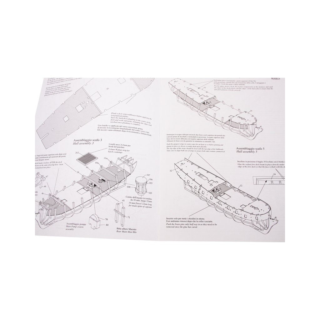 Souprava obsahuje leptané mosazné díly (až na vesla a člunové kování, stejně jako mnoho dekorací), laserem řezané dřevenné díly, čluny, leptané měděné desky pro podmořské plavidlo, pozoruhodný soubor vlajek a velmi podrobné výkresy a plány. Žebra a kýl jsou řezány laserem z 5mm překližky, další části jsou vyrobeny z pevného ořechu, překližky.