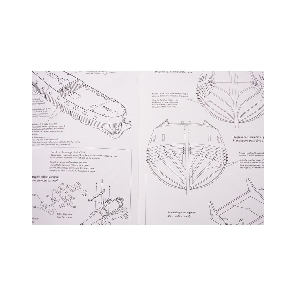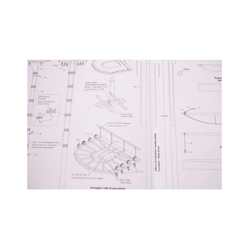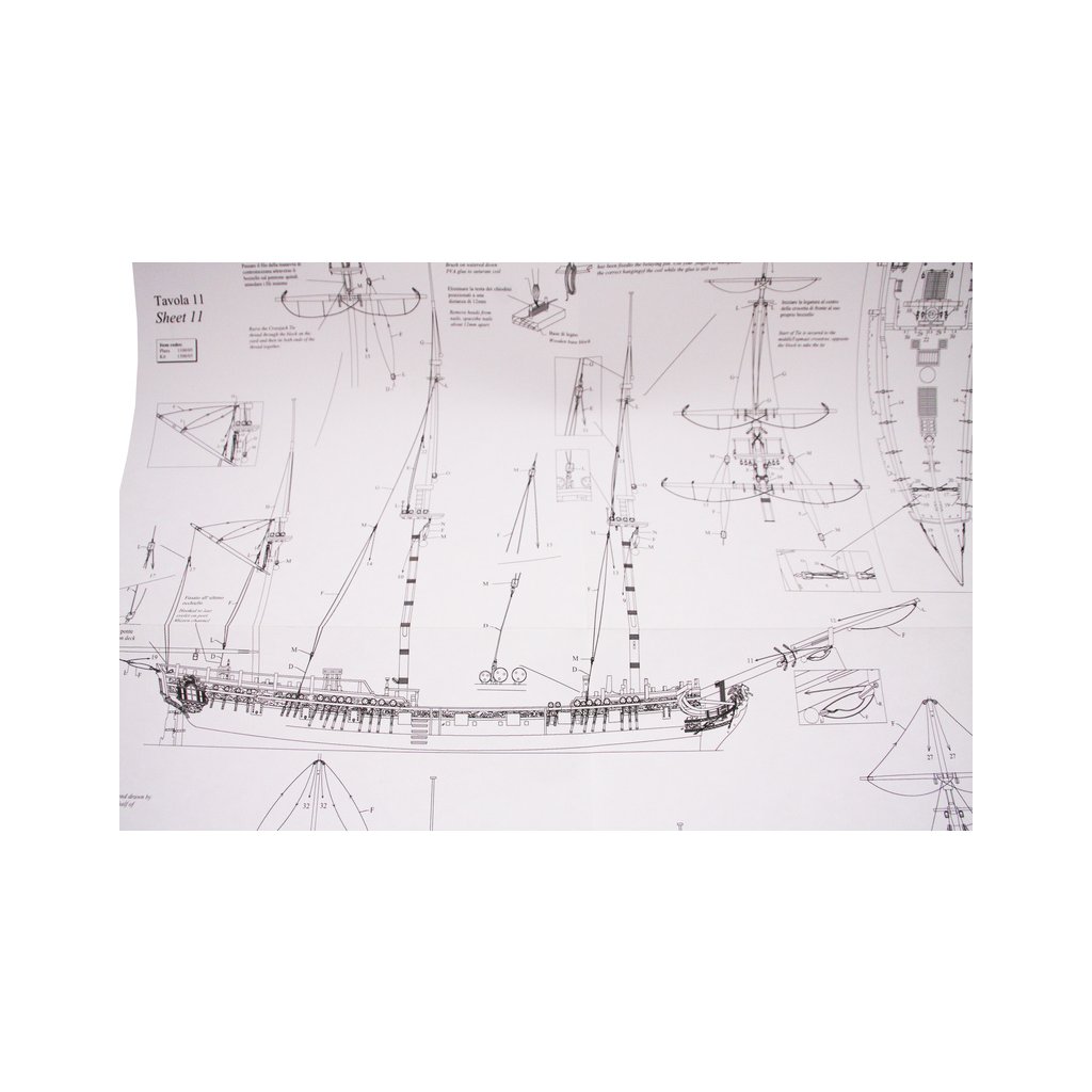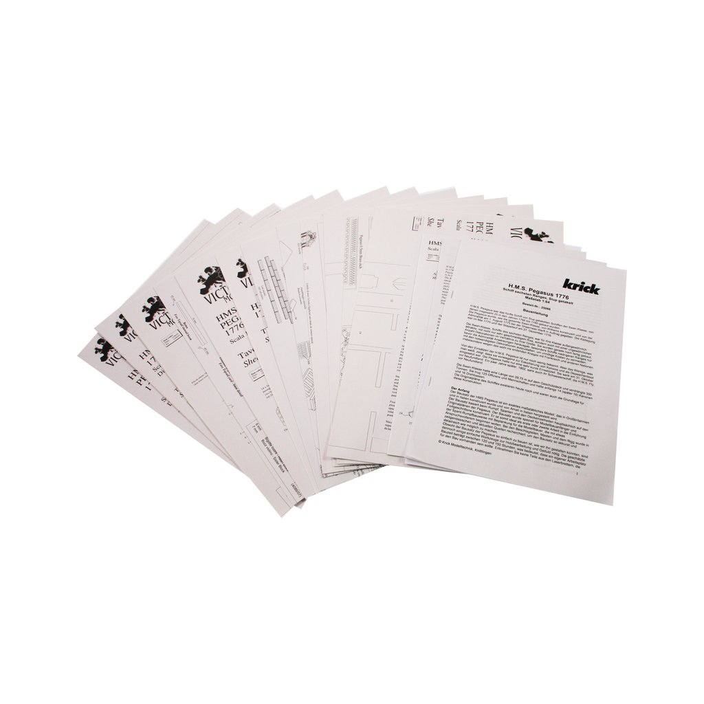 Set obsahuje kompletní sadu výkresové dokumentace modelu v měřítku 1:1 s postupem stavby, na výkrese jsou pečlivě označeny díly a je zde i seznam jednotlivých součástí modelu.