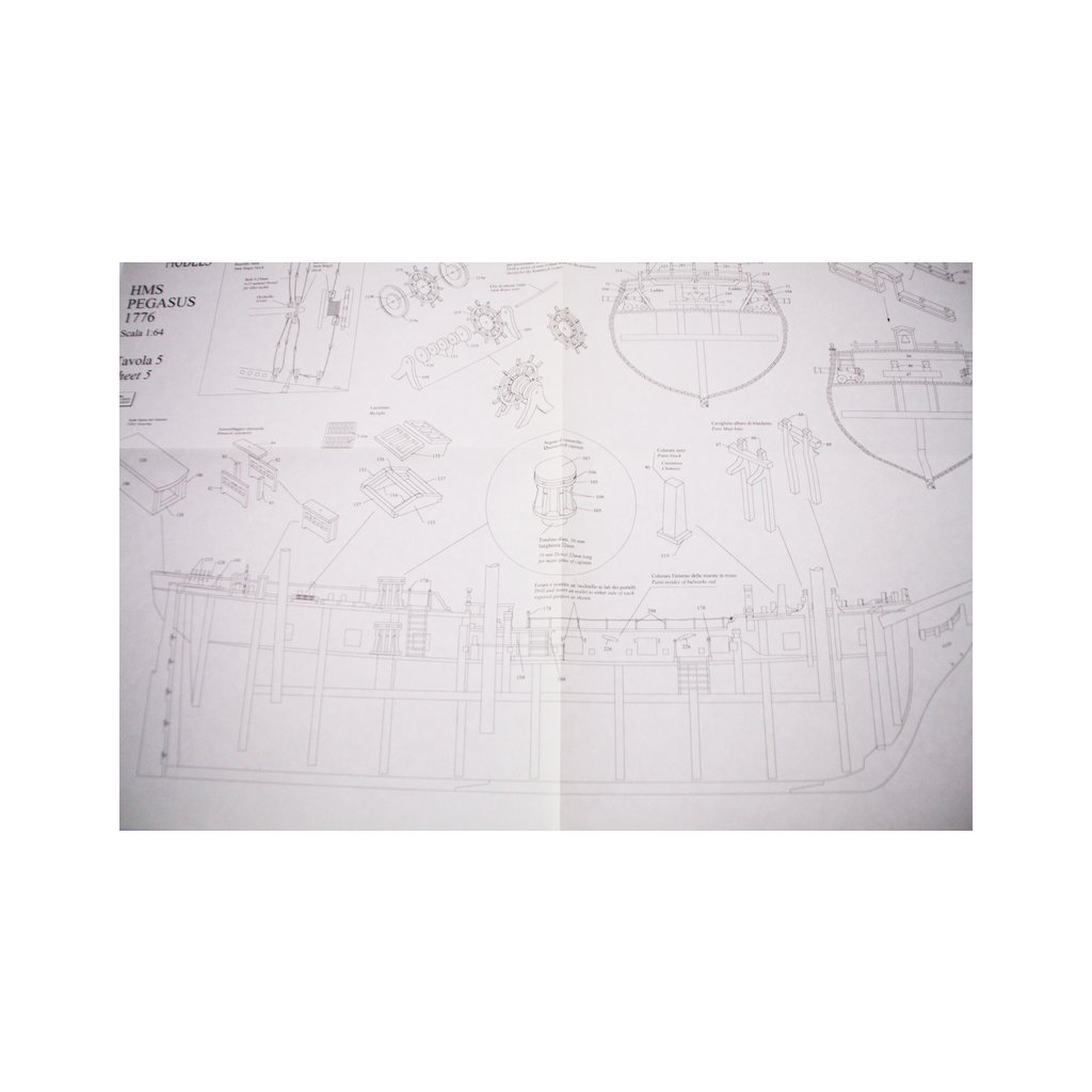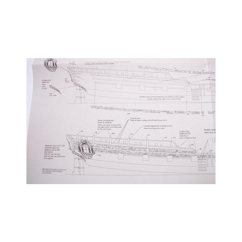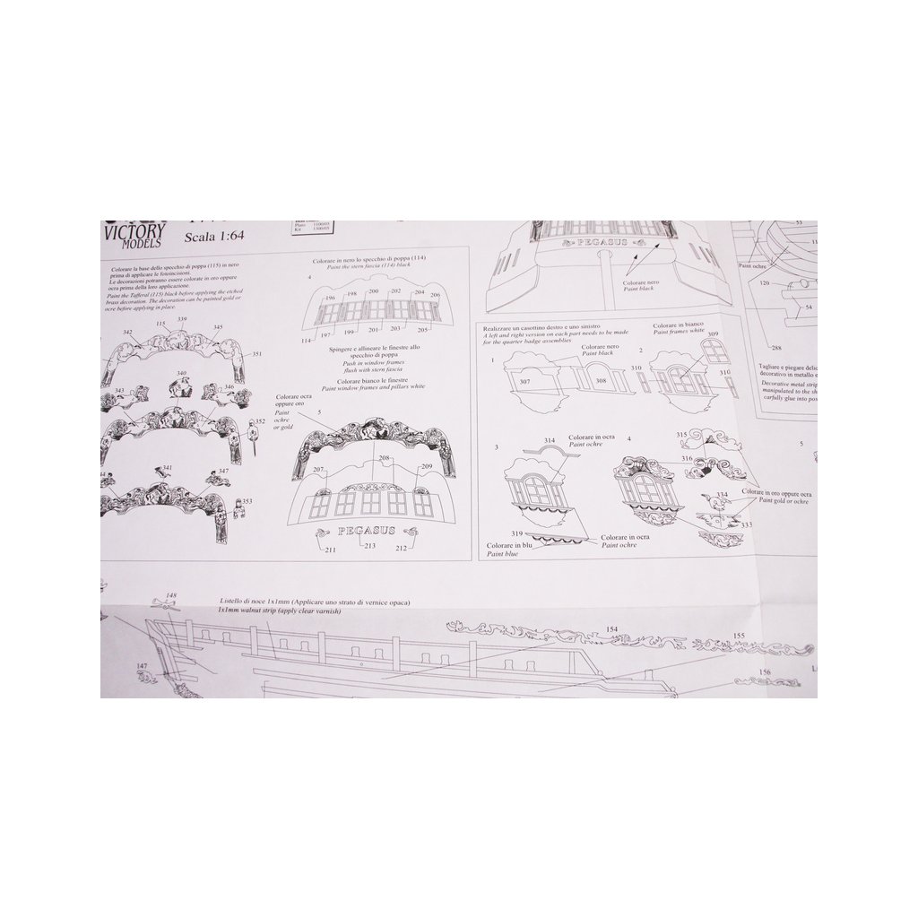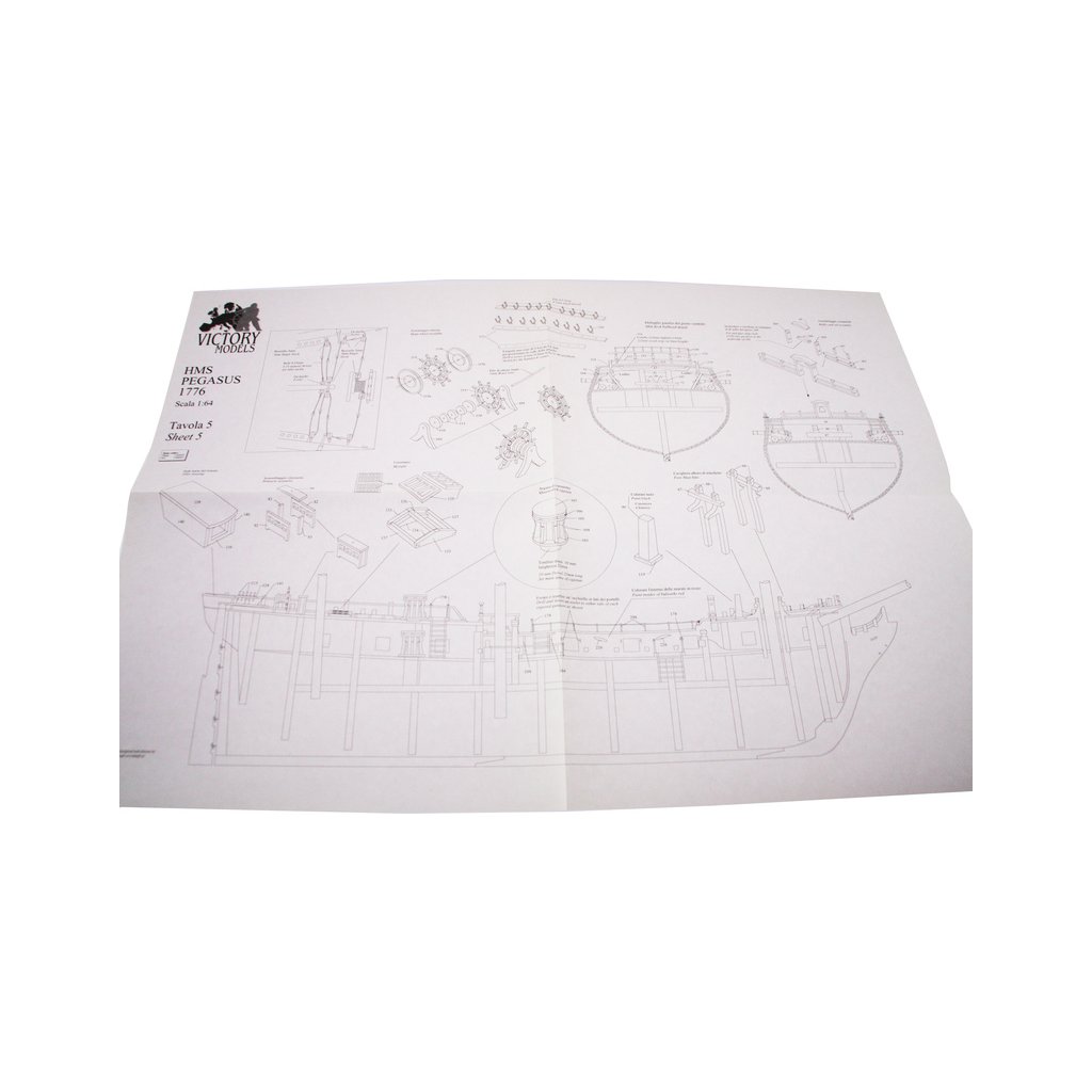 Obsahem balení je stavebnice lodi VICTORY MODELS H.M.S Pegasus 1776 1:64 kit. Balení obsahuje sadu překližkových dílů, sadu dřevěných lišt o různém průřezu, blistr s drobnými díly, díly z mosazi, sadu výkresů a vícejazyčný manuál.