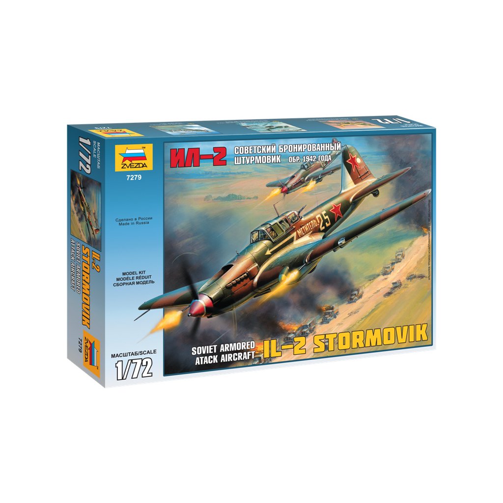 Plastikový model Zvezda 7279 - letadlo Il-2 Stormovik v měřítku 1:72 ke slepení. Stavebnice obsahuje 75 dílků, délka 160 mm, obtížnost 2.