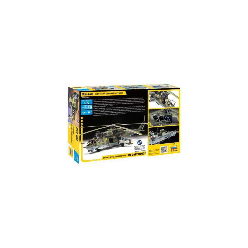 Plastikový model Zvezda 7315 - sovětský útočný vrtulník MI-24P v měřítku 1:72 ke slepení. Stavebnice obsahuje 267 dílků, délka 298 mm, obtížnost 4.