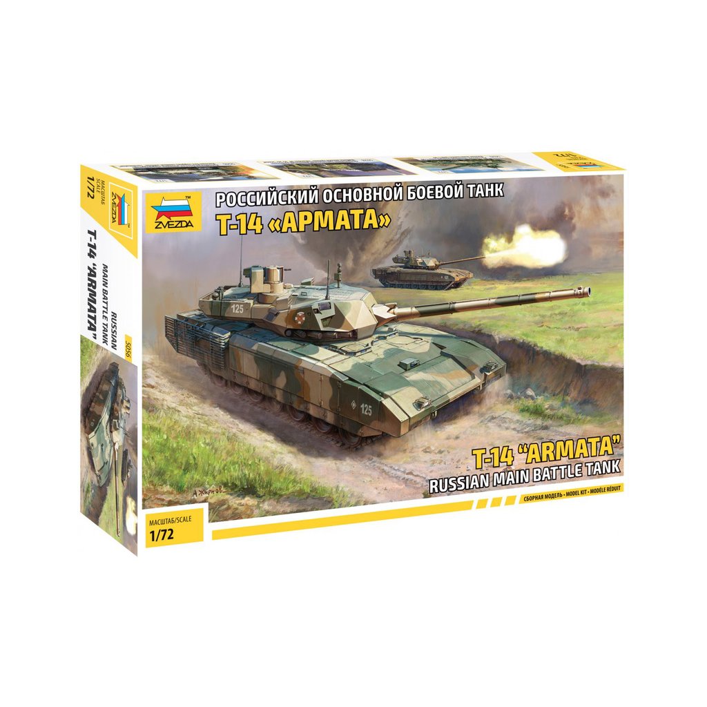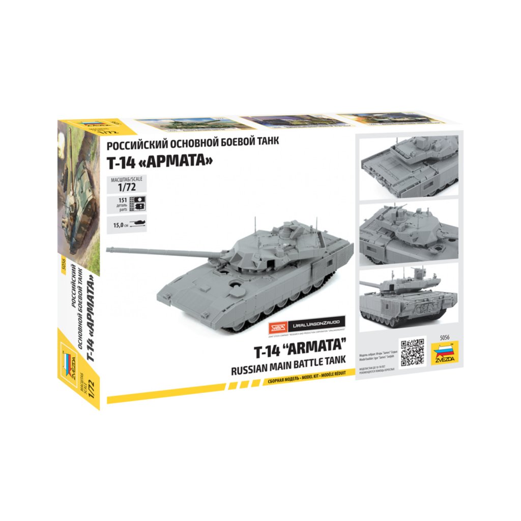 Plastikový model Zvezda 5056 - ruský hlavní bitevní tank T-14 "Armata" v měřítku 1:72 ke slepení. Stavebnice obsahuje 151 dílků, délka 150 mm, obtížnost 5.